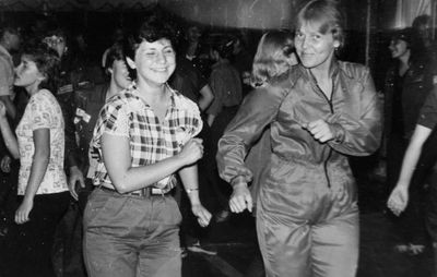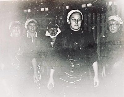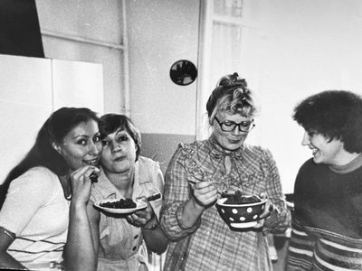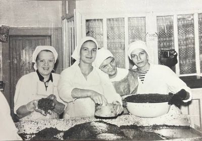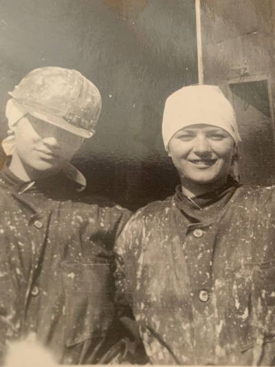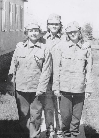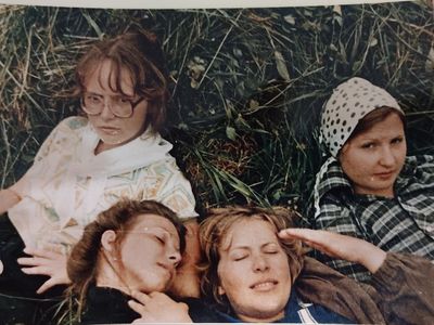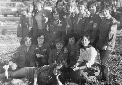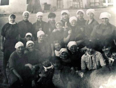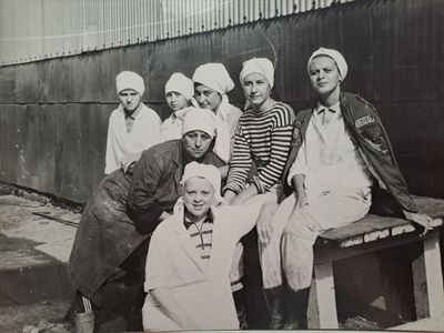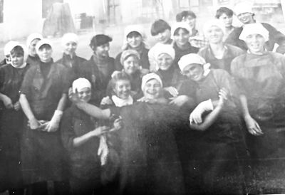 После ночной смены слева направо : Макушкина Наташа, Качаева Таня, Сидоренко Оля, ?, Лапшина Ира