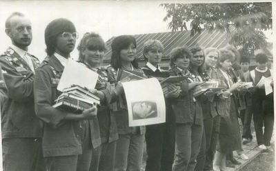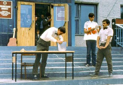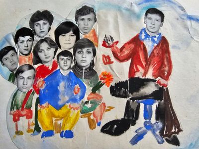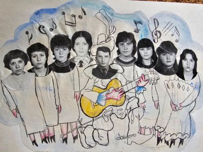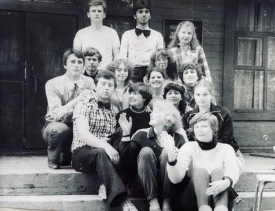 Слева направо с нижнего ряда -> Хорошилова Лена нижний правый угол -> Соловьева Люба ->Степа Сакович, Козлова Наташа, Сидоренко Ольга, Гутова Марина, -> Арумс Слава, Тецлов Федя, ?, Осинцева Лена, Жеребных Люся, Макушкина Наташа -> Павликов Боря, Бузин Игорь, Азанова Галя Взгляд на любимого маэстро Степа , все девочки твои