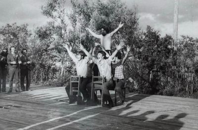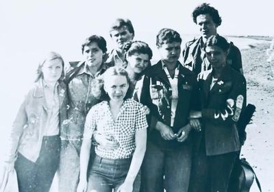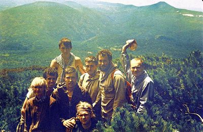 Где-то на сопках Снизу -> Дмитриюк Тоня Сывч Толя Лаптев Сергей -> Андреева Лена Жилякова Ольга Калевинский Владимир -> Хабидулина Марина Шафеева Ольга Косьяненко Юра Еремина Ира