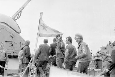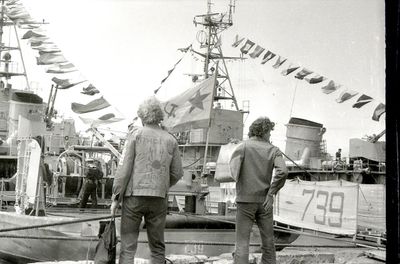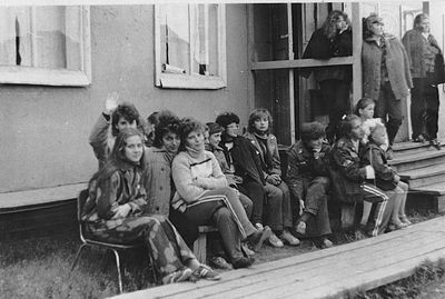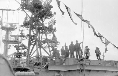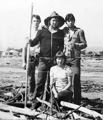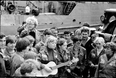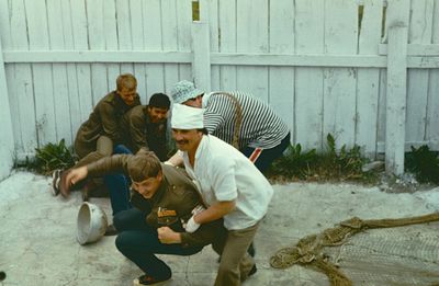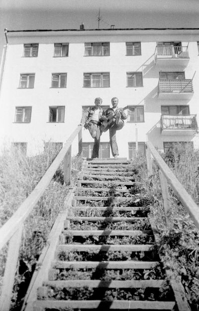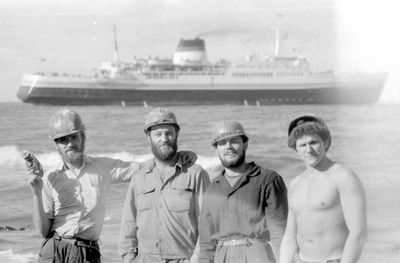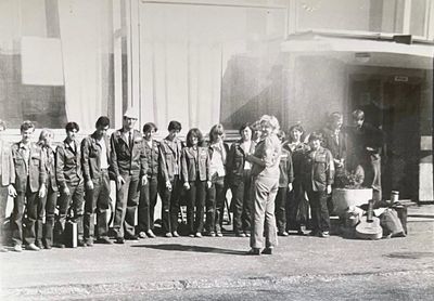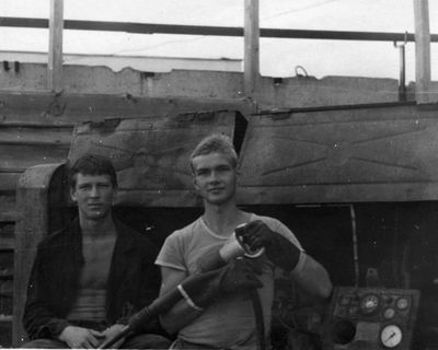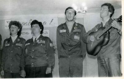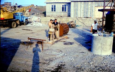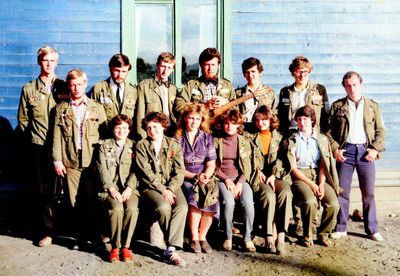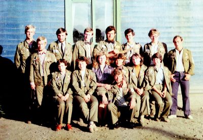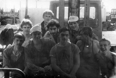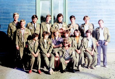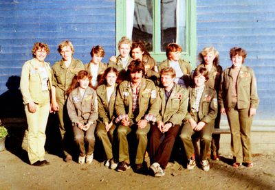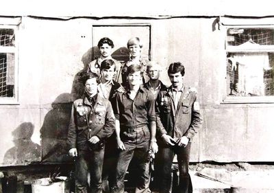 У флагштока (он же громоотвод) Салов Дмитрий; Винник Александр, Топоровский Виталий (он же Рома), Панов Юрий, выше: Овсянкина Майя, далее Машанов Андрей; ниже Пелах Дмитрий (малой); далее : Иващенко Тина, Рыжов Юрий (брат Евгения), Занин Владимир, Хоменко Игорь, Кветков Павел, Кондратенко Константин, Пляскин Юрий, Романовский Борис и главный инженер Дизельной электростанции (Валерий Раку, молдованин).