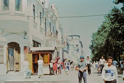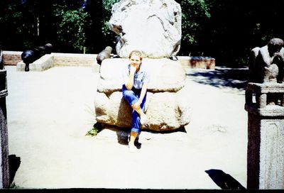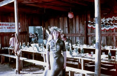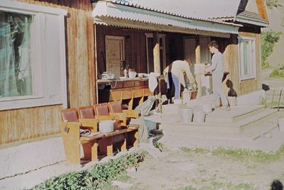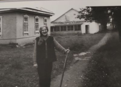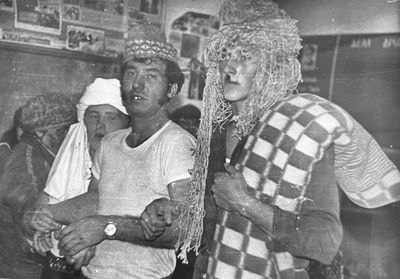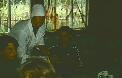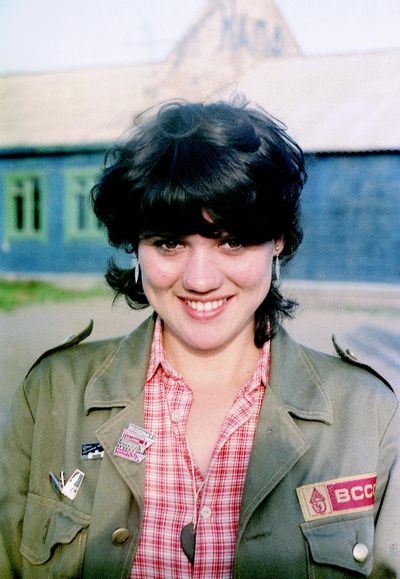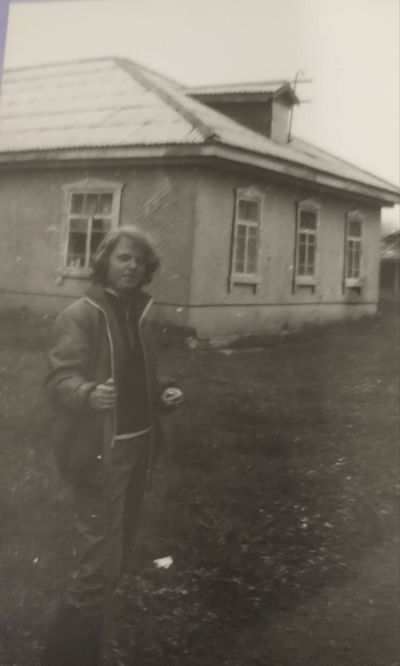 Уже 1990 году некоторые здания Атаргана выглядели не очень. Таня Тригубова в красном.