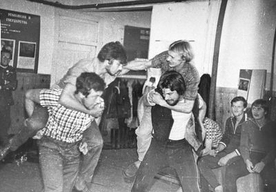 Трофа в гостях, в Стародубском. Хоменко Игорь, Кондратенко Костя, Панов Юра, Писклаков Олег, Пляскин Юра, Рыжов Юра, Фирсанов Костя.