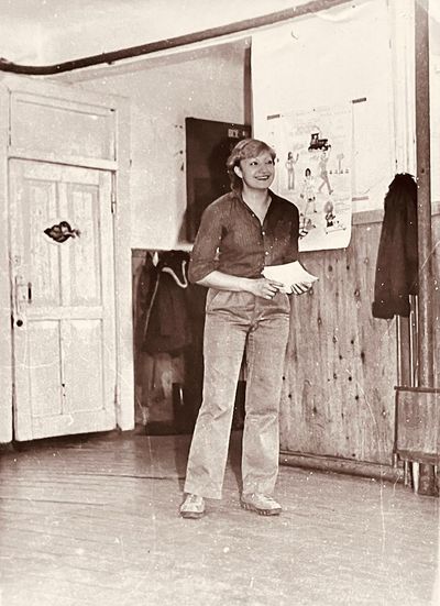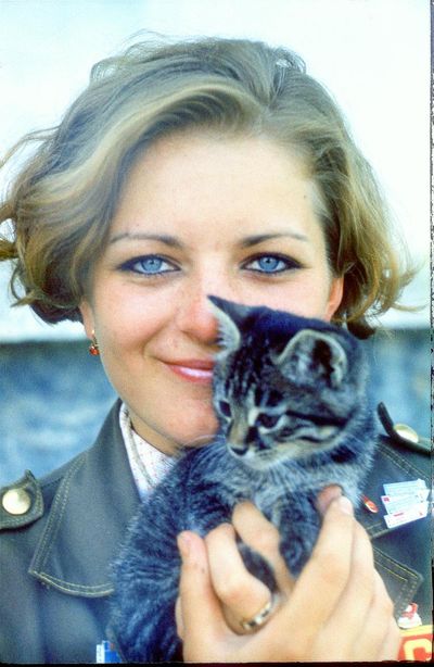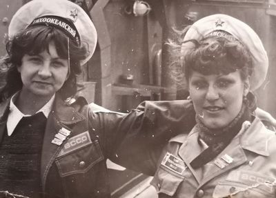 Лена Ганц с годовым запасом бескозырок.