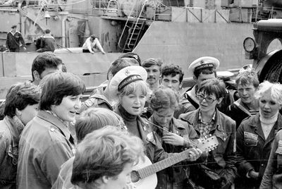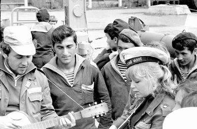 Снизу лежа - Дракунов Коля Слева направо 1 ряд : Ганц Лена 2 моряка Сидоренко Оля Туркина Наташа 2 ряд: Стоят ? Аксенова Лариса Ермошина Ольга Хабидулина Марина Беляева Лена