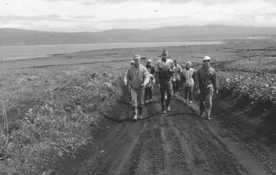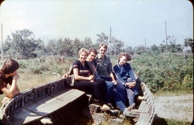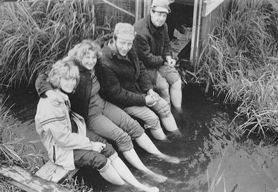 На болоте за ягодами (слева направо) : Сургутскова Галя, Макушкина Наташа Сидоренко Оля, Дубинин Слава, Больных Оля, Лапшина Ира