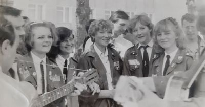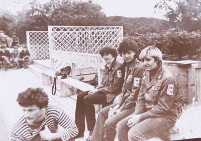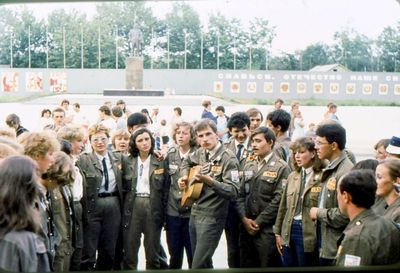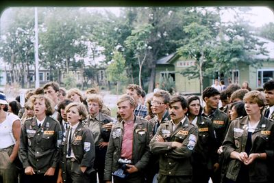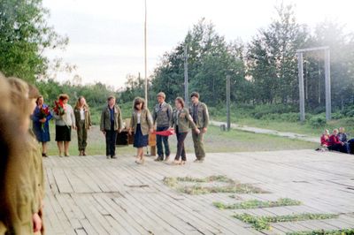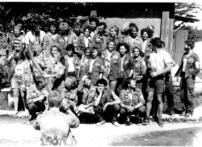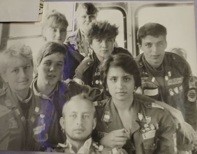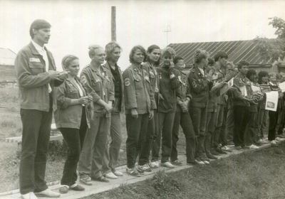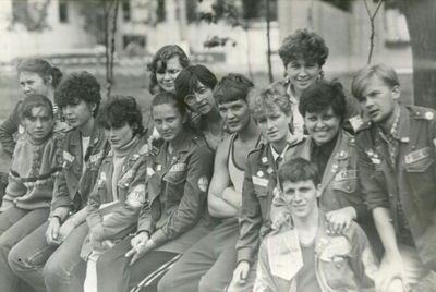 Аванте 81 На слете Ряд сидя Фаттахова Клара Головастиков Андрей Маценко Наташа Завязочникова Света Перминова Тома Скороход Евгения Лапшина Ира Горчакова Ира Соловьева Люба Второй ряд сидя Хабидулина Марина ? Новокшонова Татьяна Посохина Лена Вагнер Лариса ? Еремин Сергей -> ? Минюк Ольга Тецлов Федя Арумс Слава Степа Сакович ? ? Дмитриенко Игорь Бузин Игорь Заполев Сергей Валов Александр Кичина Ира Миллер Иосиф Глуздак Сергей Ващенко Василий Макнкова Ольга Сидоренко Ольга Янтелева Галя