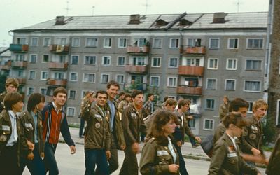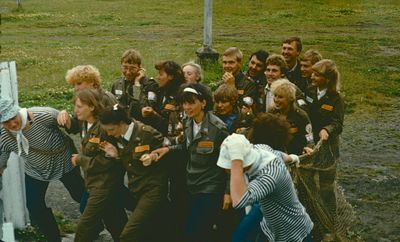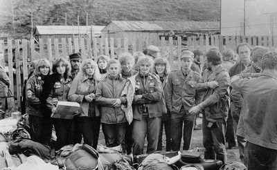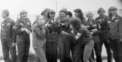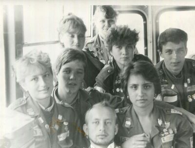 Аванте 81 Отлет в Омск Снизу слева направо Глуздак Сергей Ващенко Вася Дмитрюк Антонина Головастиков Андрей -> Бузин Игорь ? Косьяненко Юра Завязочникова Света Дмитриенко Игорь Сакович Степа Валов Александр -> ? Кузлякин Сергей ->Юр Маенкова Оля Азова Эля Грачева Лена Маценко Наташа Азанова Галя Фаттахова Клара Минюк Ольга -> Труфанова Наташа Сторожева Ирина Сильванкова Лена ? Бодраченко Таня Грабельникова Люба ? Малахова Ира? Мозжегорова Наташа Арумс Станислав