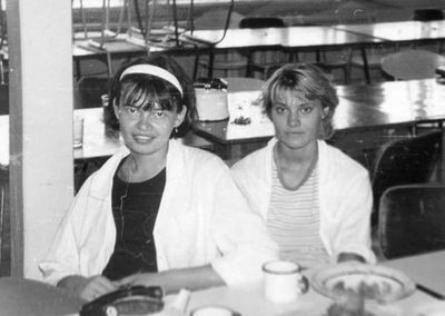Вечером после работы (слева направо) Маценко Наташа, Грачева Лена, Гутова Марина, Козлова Наташа, Самуйлов Саша