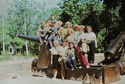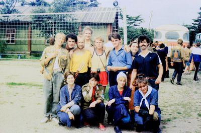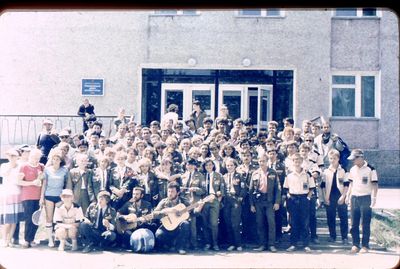 Экскурсия ПИОНЕРОВ по местам былой славы. У корпуса в Рейдово, где располагался отряд АВАНТЕ в 1988 году. Стоят - Данильцева Катя - Жованник (Чащина) Лена - Чащин Саша - Тригубова Оксана - Усова (Оларь) Ольга - Оларь Саша - Тригубова Таня Сидят - Кузнецов Боря - Шульгин Вадим - Нельга (Григорьева) Галя