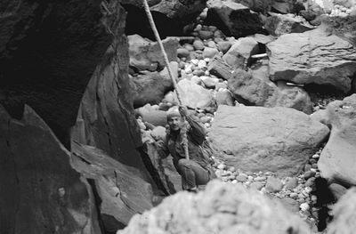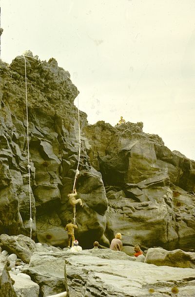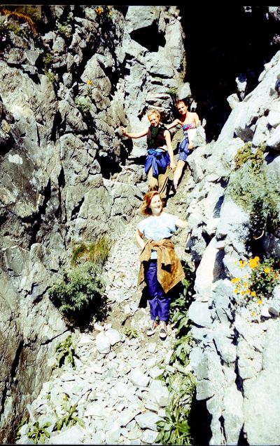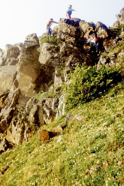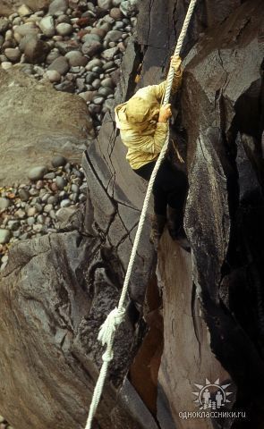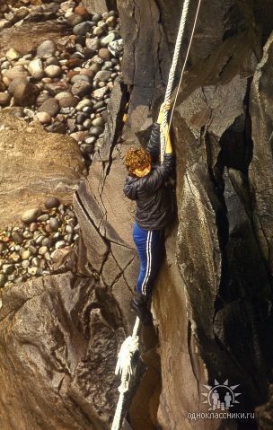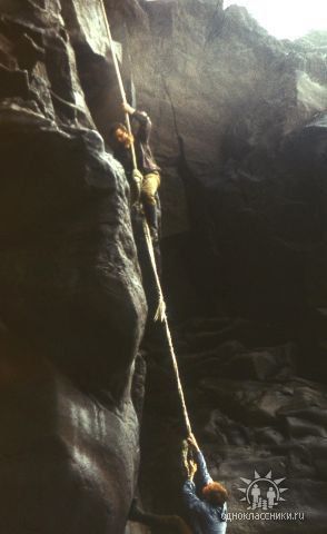 Поход номер 2 на озеро Красивые глазки. Аванте-Т 1992. За четыре года скалы несколько видоизменились и погода сухая. И уже два каната.