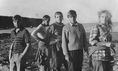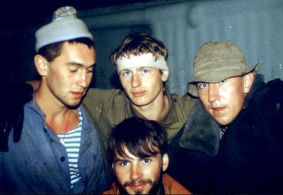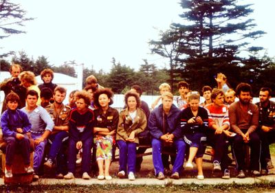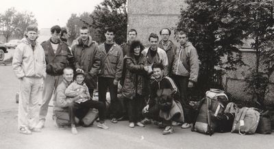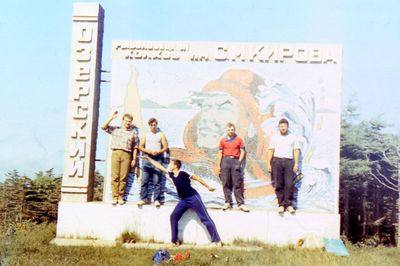 Приезд Аванте-Т на о. Итуруп (1992 г). Рыжов Юрий, Машанов Андрей, Пелах Дмитрий и Пелах Саша, Занин Вова, ниже Топоровский Виталий, Иващенко Тина, вверху Салов Дима, Панов Юрий, Пляскин Юрий, Фирсанов Костя, Овсянкина Майя, Кондратенко Костя, Романовский Борис. снизу Винник Саша.