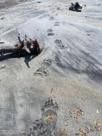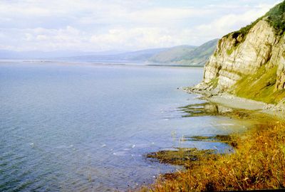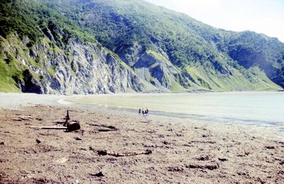 Большая часть пути проходила по прекрасному пляжу. Мыс Харбиз левее головы Оксаны Тригубовой.
