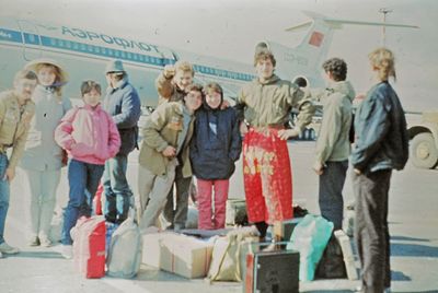 Аванте 81 Отлет из Южно-Сахалинска Справа Грачева Лена К стене -Завязочникова Света По центру - Маенкова Оля