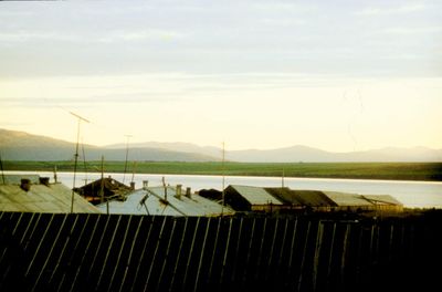 Вечерний вид на посёлок Атарган. (К сожалению, посёлок Аторган вместе с рыбзаводом не пережил перестройку и прекратил своё существование. Сейчас там только остатки фундаментов.)
