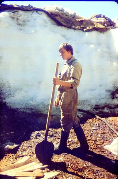 Ковыряние кульков с солью. Юра Пляскин в момент трудового подвига.