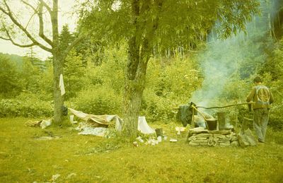 Спали под навесом из одеял. Саша Пелах научил как прогреть землю перед ночлегом. Использовали угли от прогорающего бревна. Ну и вместе не только веселее, но и теплее.