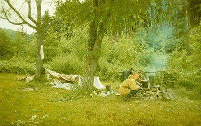 На этой фотографии к нам в гости приходил егерь со своей подругой. Помню что он помог нам поймать две рыбины из реки для ухи.